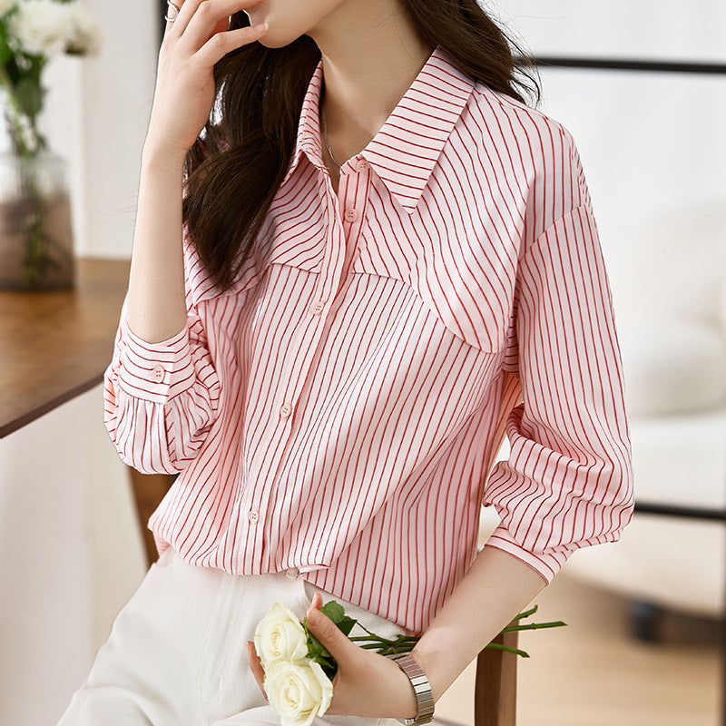French Striped Shirt Top For Women
